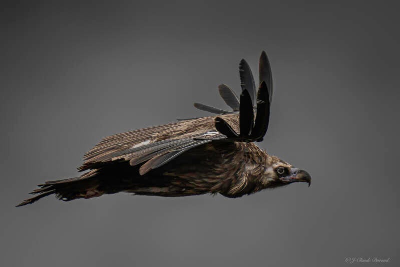 La chemise ouverte, le col relevé, un regard pénétrant... c'est la grande classe pour le Vautour Moine (Aegypius monachus). Un oiseau impressionnant, caractérisé par sa taille imposante et son plumage, qui rappelle la bure des moines. Il est le plus grand rapace diurne d'Europe, avec une envergure qui peut atteindre les 3,00 m.