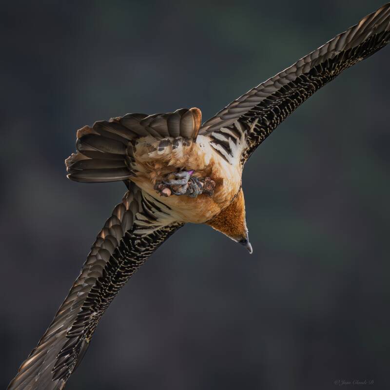 Gypaète barbu (Gypaetus barbatus), nommée USHUAIA, née le 3 mars 2025 au Zoo d’Helsinki (Finlande)... Libérée dans les Grands Causses (Aveyron) avec deux autres mâles, UNIVERS et UBAC, dans le cadre du programme LIFE GYP’ACT.